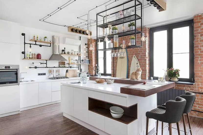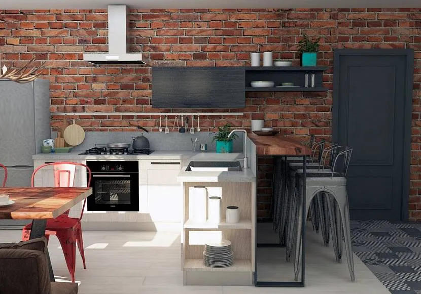 Кухня с кирпичной стенойИсточник arxip.com