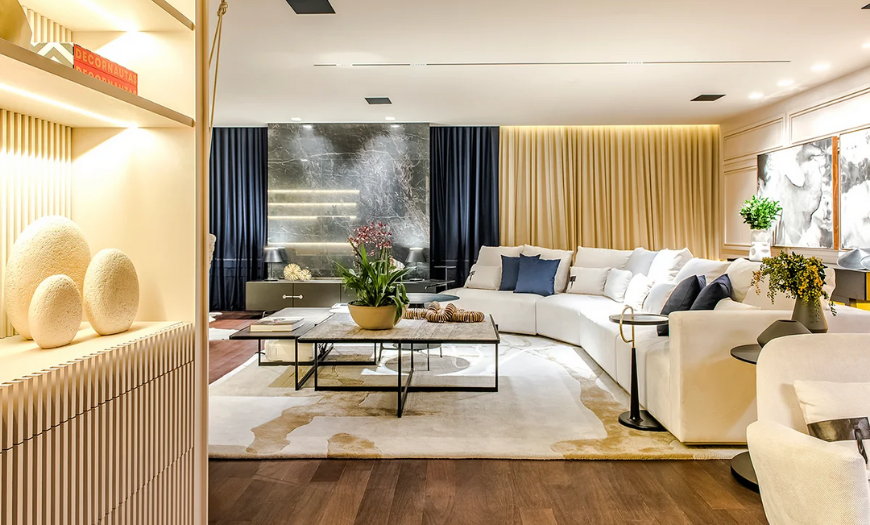 Дизайн интерьера большой гостиной
