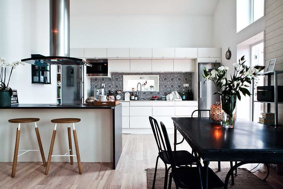Барная стойка легко справится с задачей разделения кухни на функциональные зоны