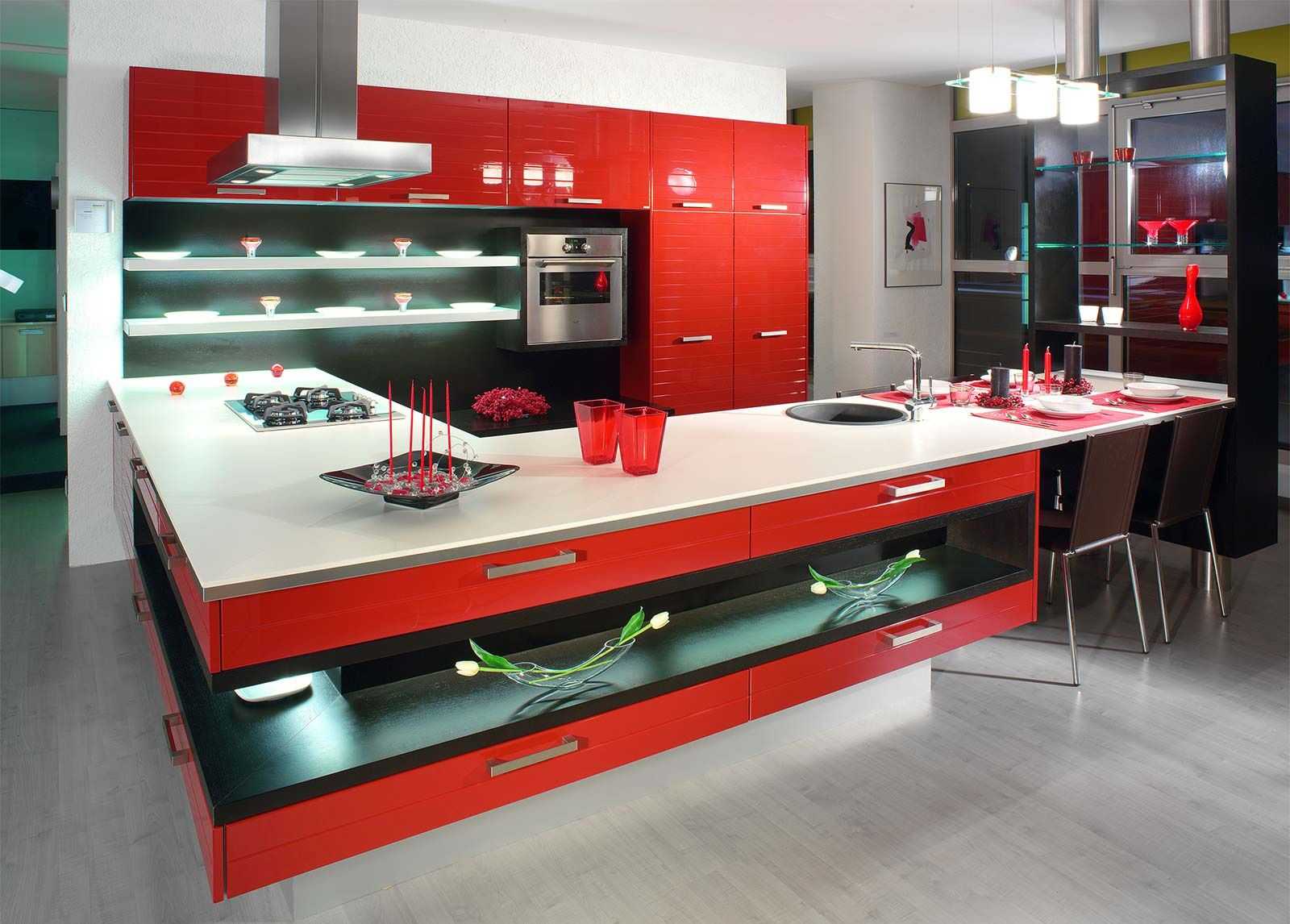 Если кухня довольно просторная, то можно использовать любую удобную планировку как П-образную, так и параллельную, в линию и даже с островом. Для компактных кухонь лучшим вариантом будет угловой гарнитур, который при желании может дополняться барной стойкой.
