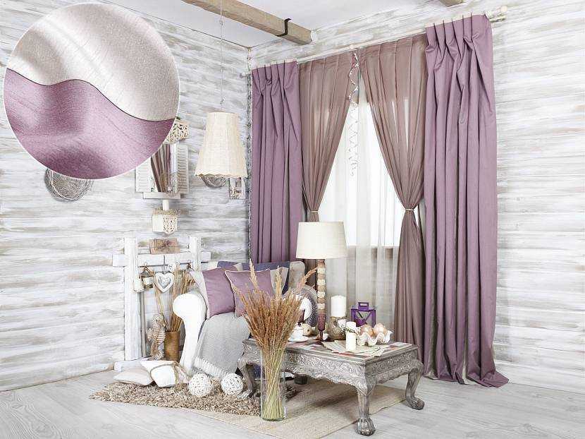 Сиреневые занавески для гостинойИсточник mycomfortabel.ru/