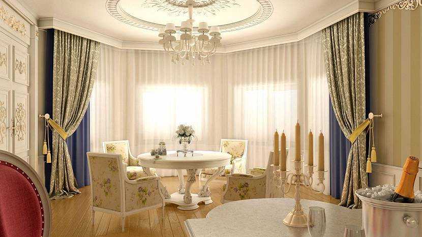 - Французские – подходят для создания торжественной атмосферы. Их используют для обустройства кухни, гостиной и даже рабочего кабинета или библиотеки. Обычно они имеют пастельные оттенки.