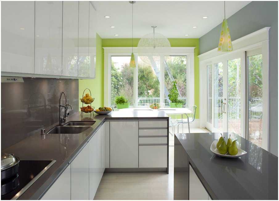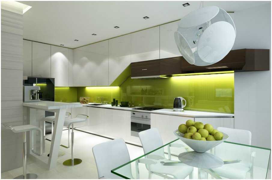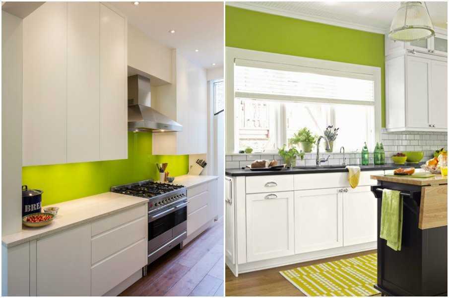 Бодрящее сочетание фисташкового и белого цветов в интерьере кухни