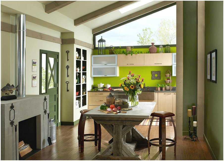 Поскольку светло-зеленый – это цвет природы, потому вместе с древесными конструкциями этот эффект еще больше усилится.