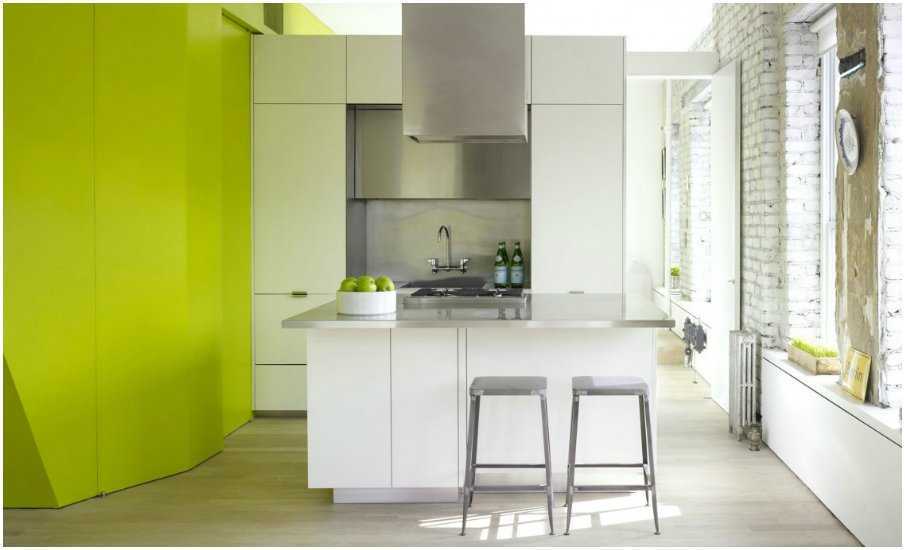 Фисташковая кухня в интерьере квартиры в стиле лофт