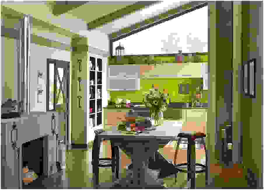 Совмещенная гостиная с кухней, идеальный вариант для современных квартир. Это стремление к простору и удобству. К тому же совмещенная кухня с гостиной дает возможность обновить дизайн и воплотить в жизнь свои желания в интерьере. Фисташковый цвет идеально подходит для темных комнат, окна которых выходят на теневую сторону. В зоне кухни обычно фисташковый цвет используют в виде настенной плитки, в обеденной зоне и зоне отдыха стены оклеивают или окрашивают в тот же цвет.