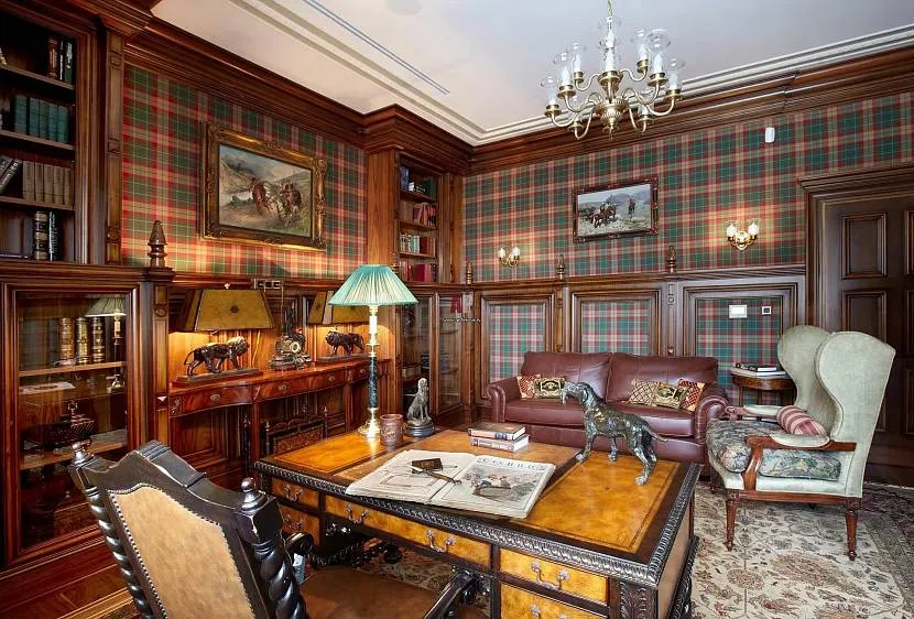 Клетка сама по себе является упорядоченным, гармоничным рисунком, а в английских интерьерах она создает ощущение гармонии и респектабельности. Рисунок тартан присутствует в обивке мягкой мебели, обоях, коврах и ковровых покрытиях, шторах и другом текстиле.