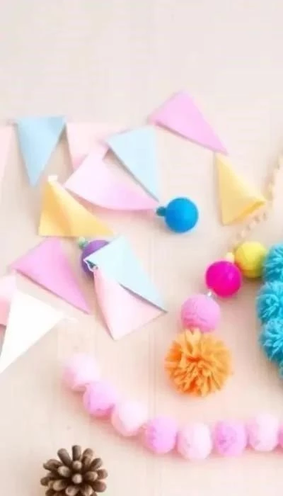 - Для гирлянд из помпонов: Пряжа, ножницы, картон (для изготовления шаблона помпона).