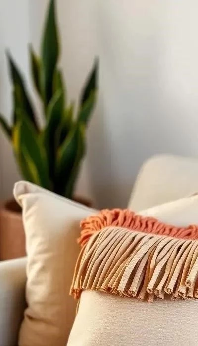 Преобразите обычную подушку, добавив ей бахрому. Это простой способ добавить текстуру и богемный шик в интерьер.