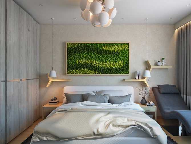 Чаще всего применяется в эко спальне именно зеленый цвет. Он прекрасно смотрится и с пастельной цветовой гаммой, и с солнечными оттенками, и с белым тоном. В любом варианте экологичной спальни обязательно встречается вкрапление зеленого оттенка – в растениях или узорах, в декоре и аксессуарах. Его наличие обязательно – иначе получится приукрашенный минимализм.