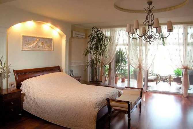 Выбирая цвет и фактуру важно, чтобы две эти составляющие и перекликались с гардинами. Если спальная комната небольшая по своим размерам, лучше всего эти две текстильные составляющие выполнять из одной ткани