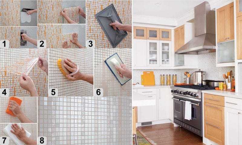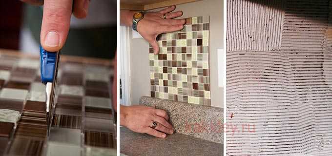 Шаг 4. Укладка мозаики на фартук своими руками – поэтапная инструкция