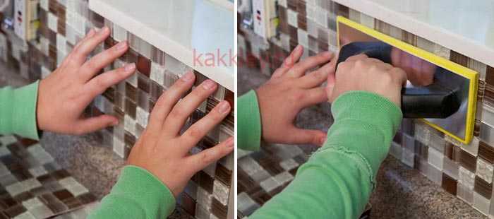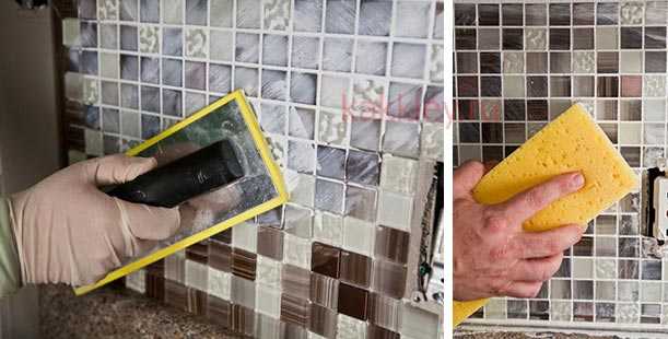 Излишки материала удаляют влажной губкой. После высыхания затирки поверхность полируют при помощи войлочной тряпки.