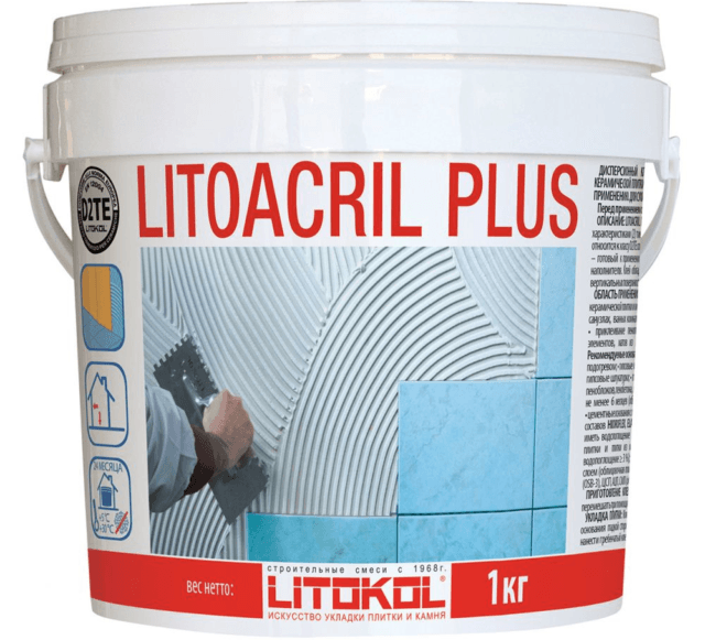 Если упаковку полностью не использовали, то вещество храниться 3–5 мес. под плотно закрытой крышкой. С помощью дисперсионного клея крепят клинкерную плитку, керамику, камень и сегменты из майолики.