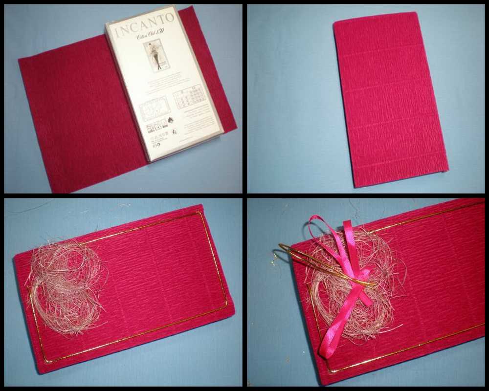 - Приготовьте восемь отрезков ленты: 4 длинных, 4 средних.