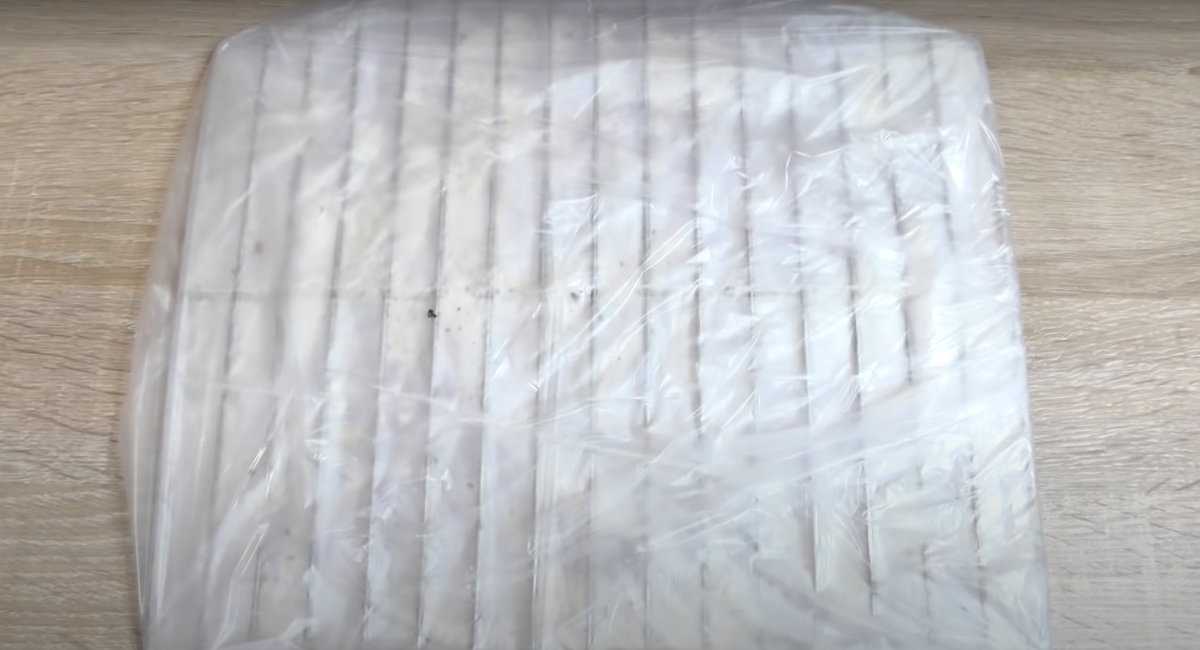 После того как мыло было равномерно распределено по поверхности решётки, её нужно запаковать в полиэтиленовый пакет и оставить его на сутки или двое.