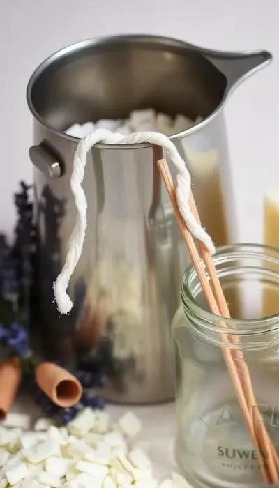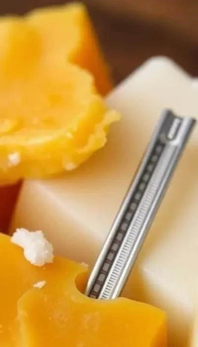 - Ароматизация и окрашивание: Добавьте ароматизатор и краситель в расплавленный воск, тщательно перемешайте.