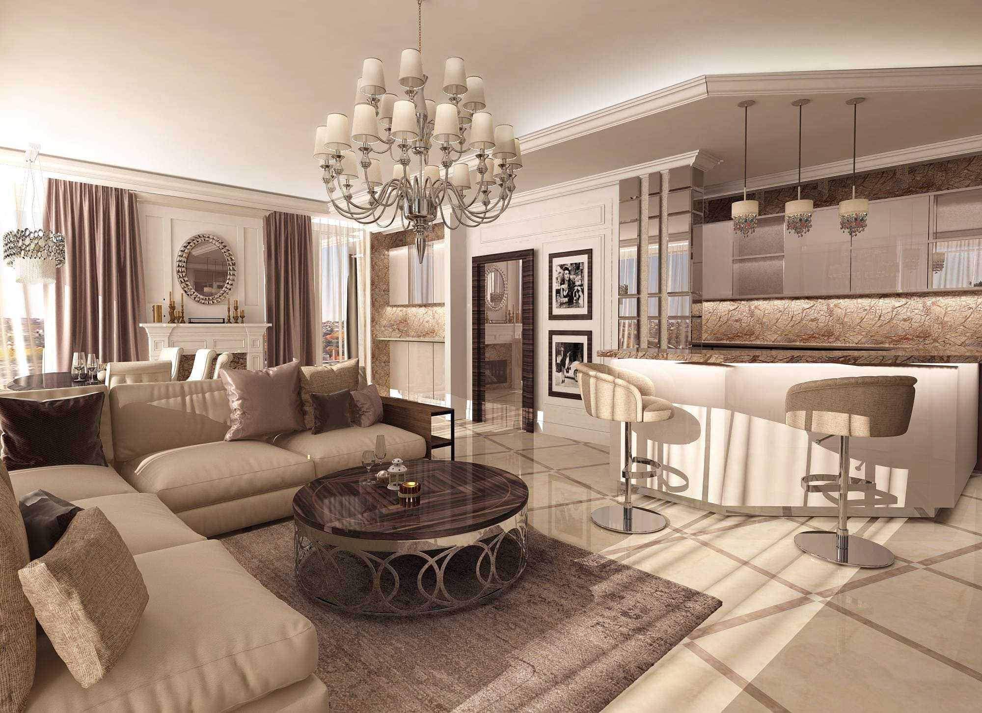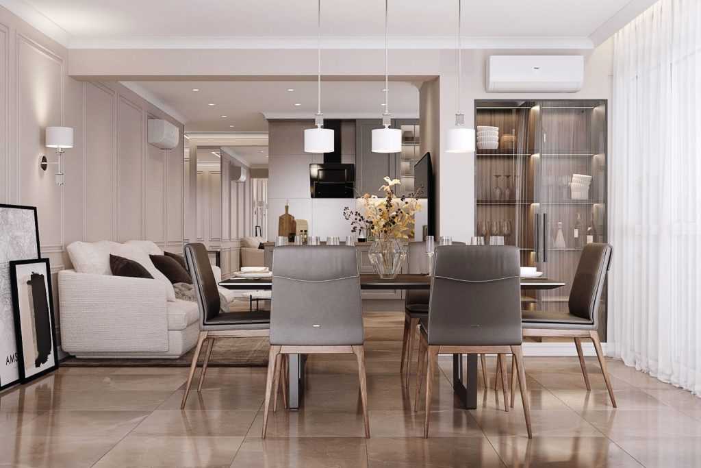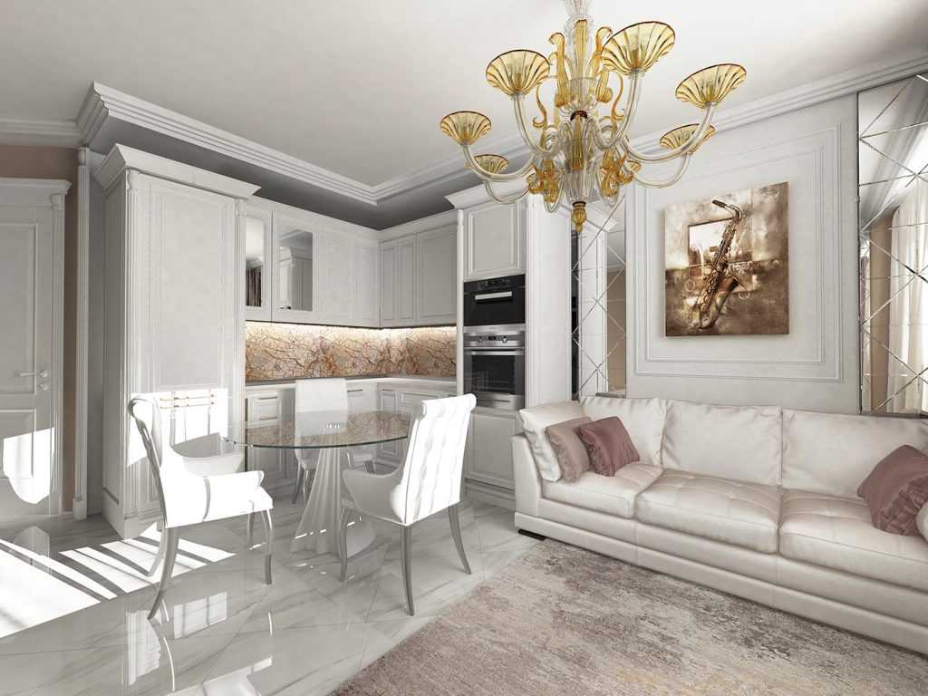 Гармония и комфорт в кухне-гостиной, оформленной в стиле неоклассика