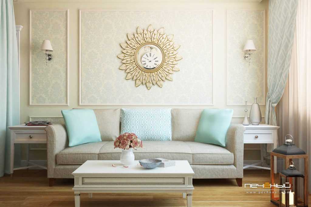 Стиль неоклассика хорошо подойдет как для больших, так и для маленьких гостиных
