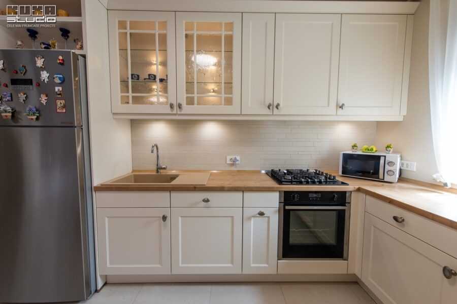 - Белый и бежевый цвета — символ чистоплотности, свежести и везения. Подойдут для минималистических и классических кухонь, а также стиля прованс. Светлыми цветами оформляется не только отделка, но и мебель, текстиль, аксессуары.