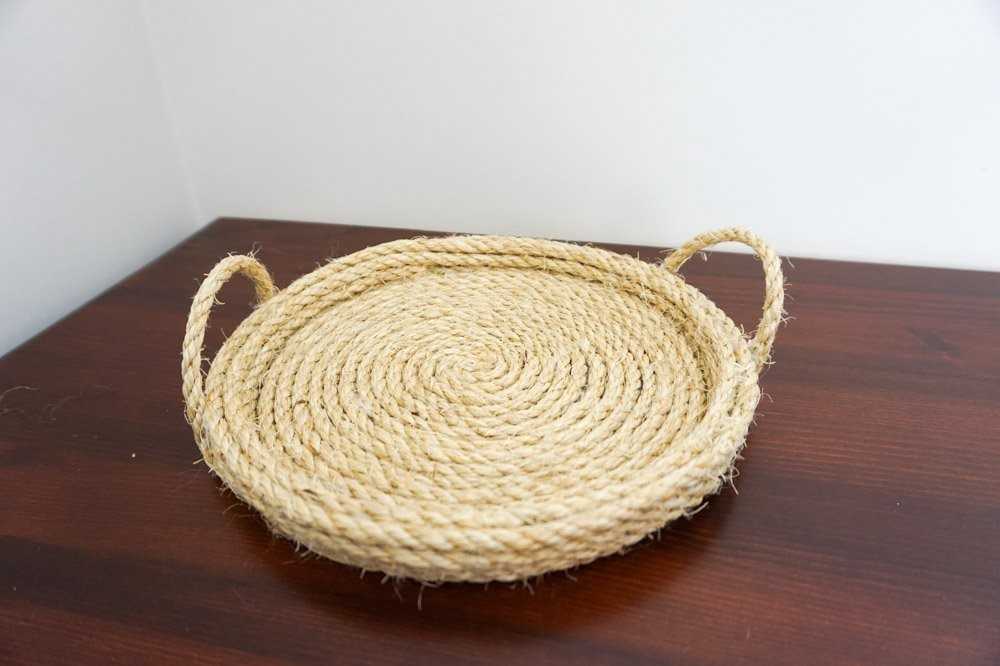 Или же сшить между собой ряды каната по форме. Получится прочный и стильный поднос.