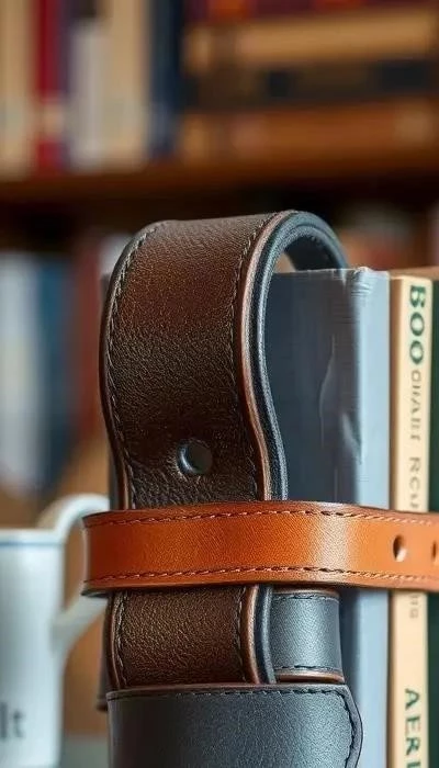 Описание: Стильная и функциональная подставка для книг, сделанная из старых ремней, добавит оригинальности вашему кабинету или гостиной.