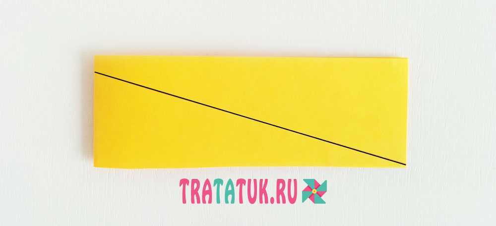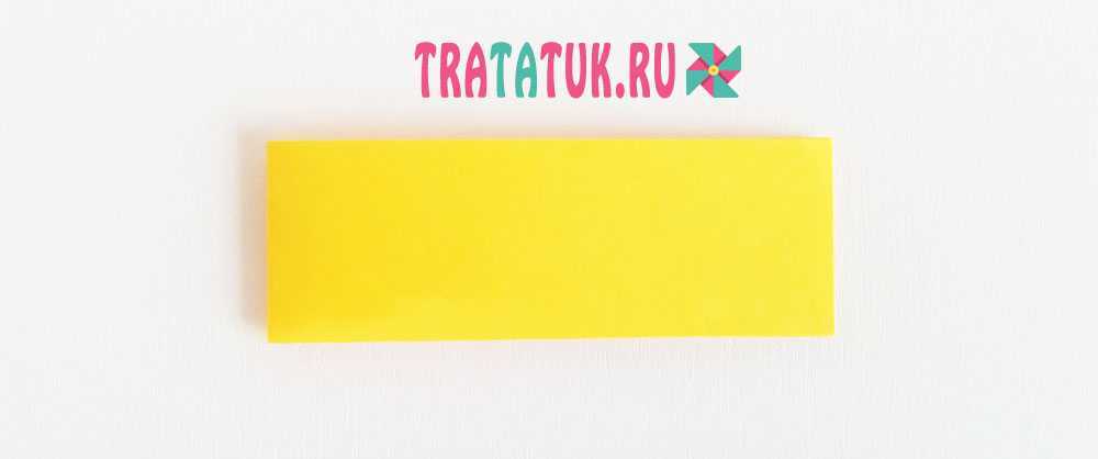 1. Возьмите один лист бумаги одного цвета и сложите его пополам, чтобы получить прямоугольник.