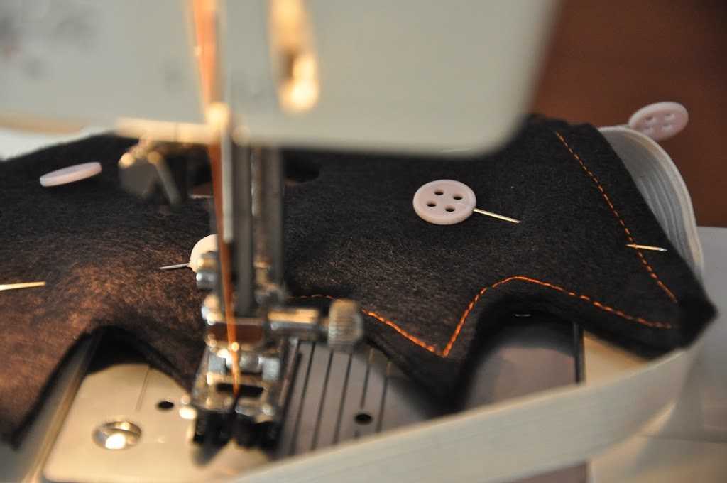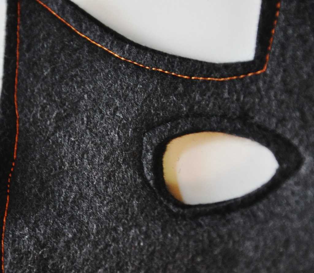 После этого нужно обе половины материала пристрочить с помощью швейной машинки и обрезать ненужные части. Глаза вырезаются канцелярским ножом.