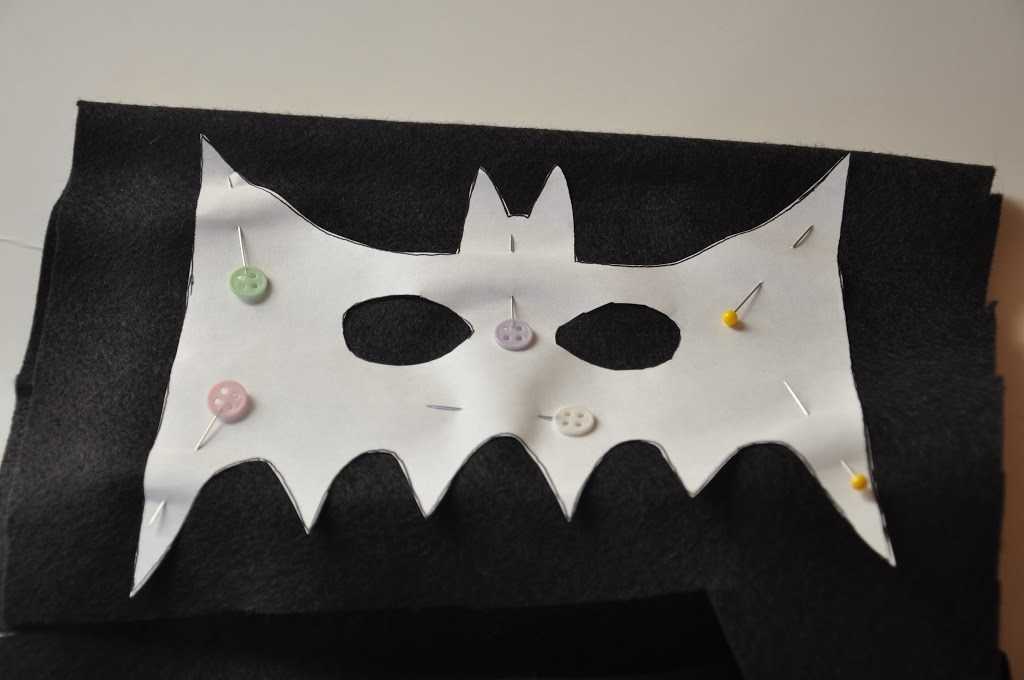 При этом важно помнить, что у настоящего героя они имеют форму полумесяца, концы которого направлены вверх. С помощью канцелярского ножа вырежьте отверстия для глаз