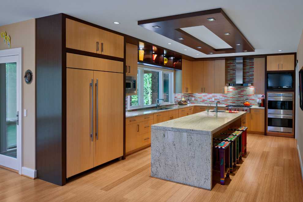 При творческом подходе, такой потолок вполне может украсить вашу кухню. Не подойдет он только для маленьких кухонь (от 9 и менее кв.м.) и для кухонь с невысокими потолками, так как, как и любая подвесная система, этот потолок “съест” до 20 см высоты комнаты. Но если учесть его долговечность, экологичность, влагостойкость и относительно невысокую стоимость некоторых видов, то к нему стоит присмотреться внимательнее.