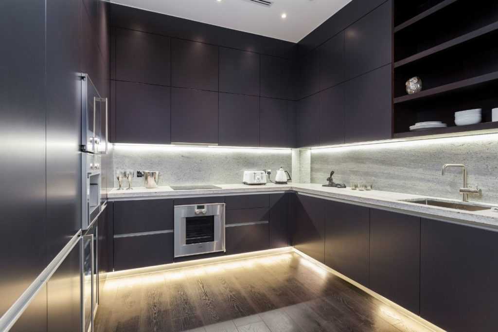 - Подсветка цоколя кухонного гарнитура и плинтусов зрительно увеличивает пространство.