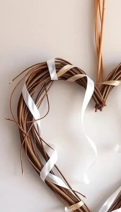 Материалы: Ивовые ветки, ленты, бусины, клей, основа для панно. Инструкция: 1. Согните ивовые ветки в форме сердца. 2. Закрепите форму бечевкой или проволокой. 3. Украсьте сердце лентами и бусинами, приклеивая их к веткам. 4. Приклейте сердце к основе.