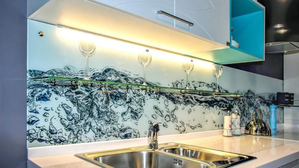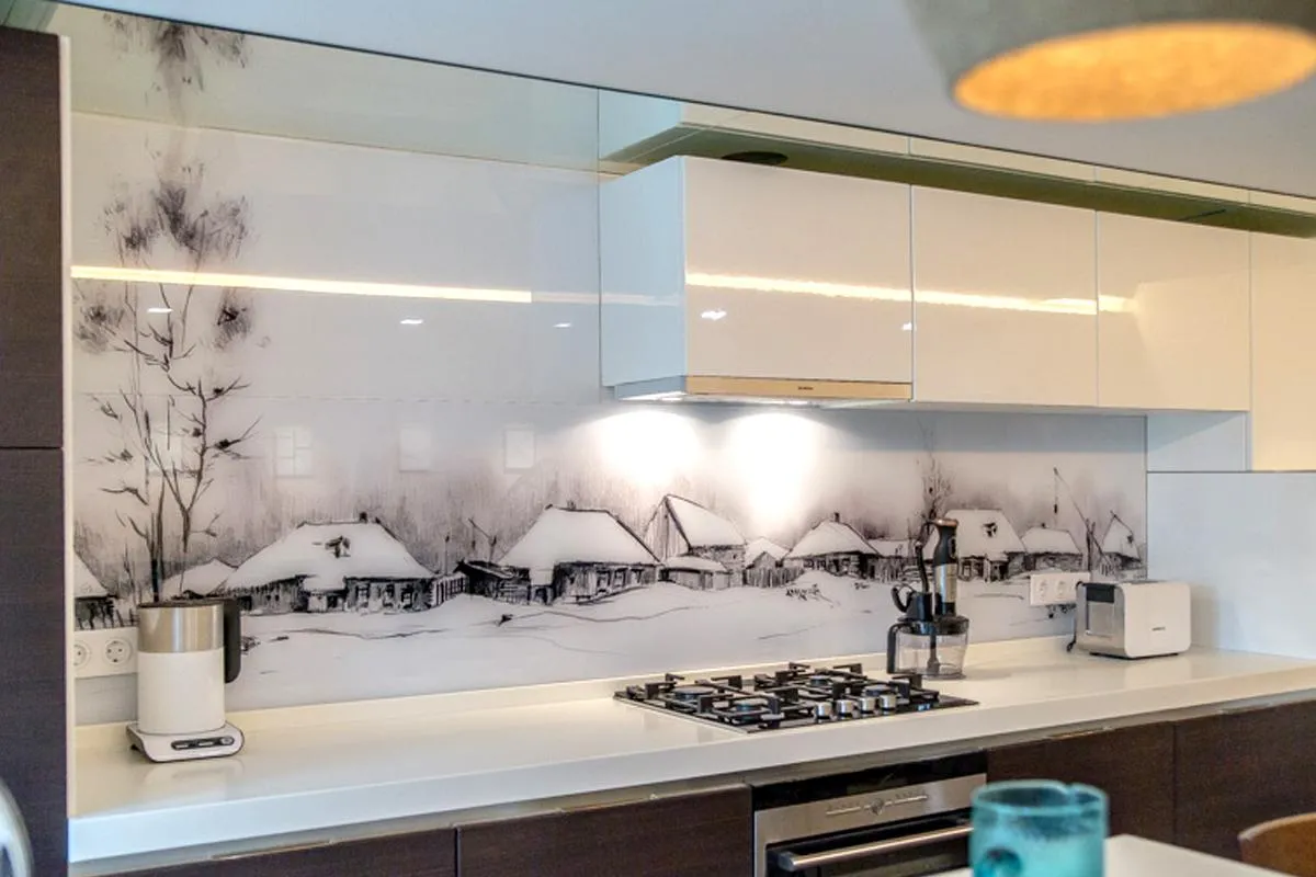 В оформлении этой поверхности важно использовать практичные материалы, которые без последствий переносят перепады температуры и влажности. Отличным решением станет панно из плитки или скинали