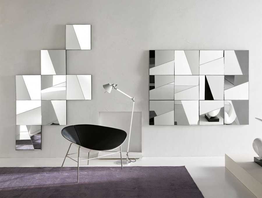 Зеркальные панно, для создания которых используют как стандартные зеркальные поверхности, так и элементы необычных форм, волнистые и неровные зеркала.