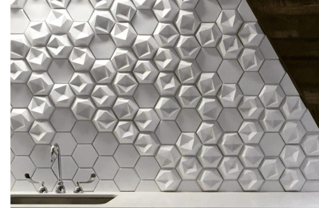 Оригинальное панно можно создать из 3D панелей. Материалом для их изготовления служит дерево, древесные плиты, алюминий, гипс, ПВХ, стекло. Варианты узоров: