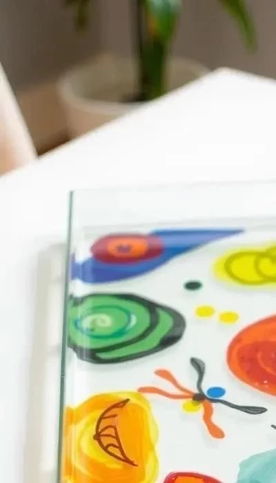 Описание: Элегантный и изысканный поднос с абстрактным или цветочным рисунком. Материалы: Стеклянный поднос, краски для стекла, кисти, лак. Инструкция: Нанесите рисунок на стекло с помощью красок. Дайте краске высохнуть. Покройте лаком.