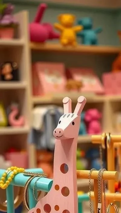 Описание: Использование игрушек в качестве подставок – креативный и оригинальный способ привлечь внимание покупателей. Например, можно использовать небольшие фигурки животных или кукол для демонстрации украшений.