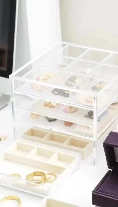 - Функциональность: Наличие отделений для разных типов украшений (серьги, кольца, браслеты), возможность складывания для удобства хранения.