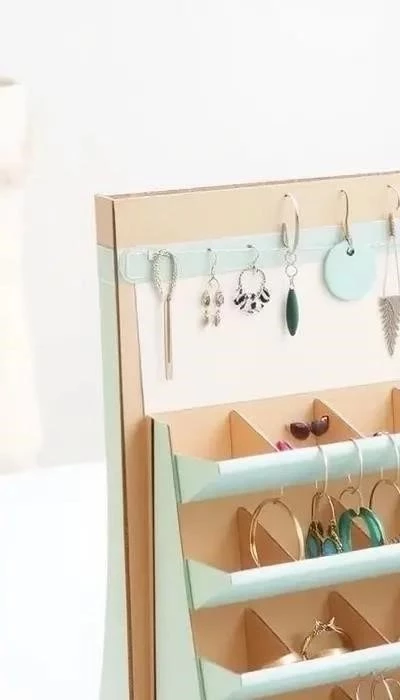 Гипс — прекрасный материал для создания скульптурных подставок. Используя обычную перчатку, вы можете сделать реалистичную руку, которая станет элегантным держателем для колец и браслетов. После застывания гипса перчатка легко снимется, а у вас получится классная подставка. Также можно использовать старые бытовые предметы. Например, обычная вешалка может с огромным успехом выполнять функцию хранения бижутерии: серьги стоит разместить на дополнительных крючках, браслеты надеть на металлический стержень, а бусы завязать петлей на перекладине. Старая тёрка, покрашенная из баллончика, превратится в интересный арт-объект и удобный держатель для серег. Изящный чайный сервиз станет прекрасным способом хранить кольца и цепочки. Ящики старого стола с перегородками – идеальная полка для мелочей. Стойка из дверных ручек, закрепленных на основе, также выглядит оригинально и функционально.