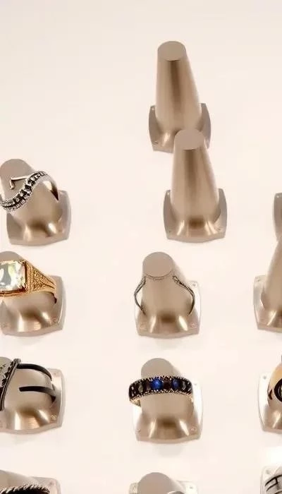Геометрические формы, металлический блеск, хромированные элементы. Подходят для демонстрации современных украшений. Привлекают внимание и подчеркивают стиль магазина.