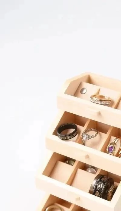 (с фото) Используйте небольшую деревянную коробку или поднос. Сделайте углубления для колец и серег. Покройте подставку лаком или краской. Удобный и компактный органайзер для демонстрации мелких украшений.