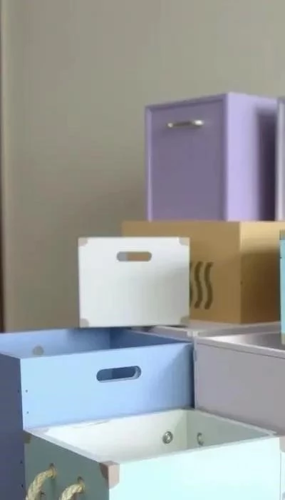 Обтяните коробки красивой тканью, закрепив ее клеем или степлером. Добавьте ручки или ленты для удобства. Такие коробки идеально подойдут для хранения одежды, игрушек или книг. Это простой и элегантный способ организовать пространство.