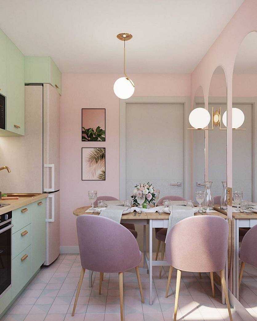 Как уже упоминалось выше, перегородку между кухней и комнатой лучше частично снести, а на ее месте оформить барную стойку. Тогда на границе двух смежных помещений можно будет создать обеденную зону.