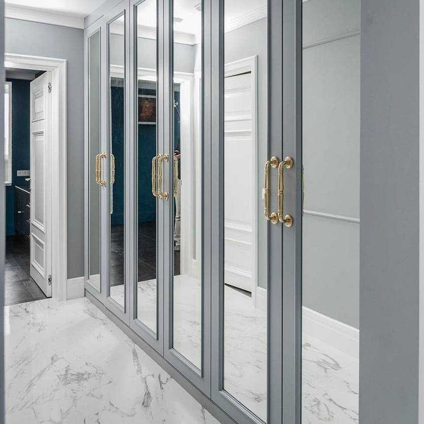С коридоре и спальне рекомендуется разместить шкафы до потолка, цвет которых должен перекликаться с цветом стен. Они будут выглядеть органично и смогут вместить в себя много вещей. Наиболее подходящие оттенки: