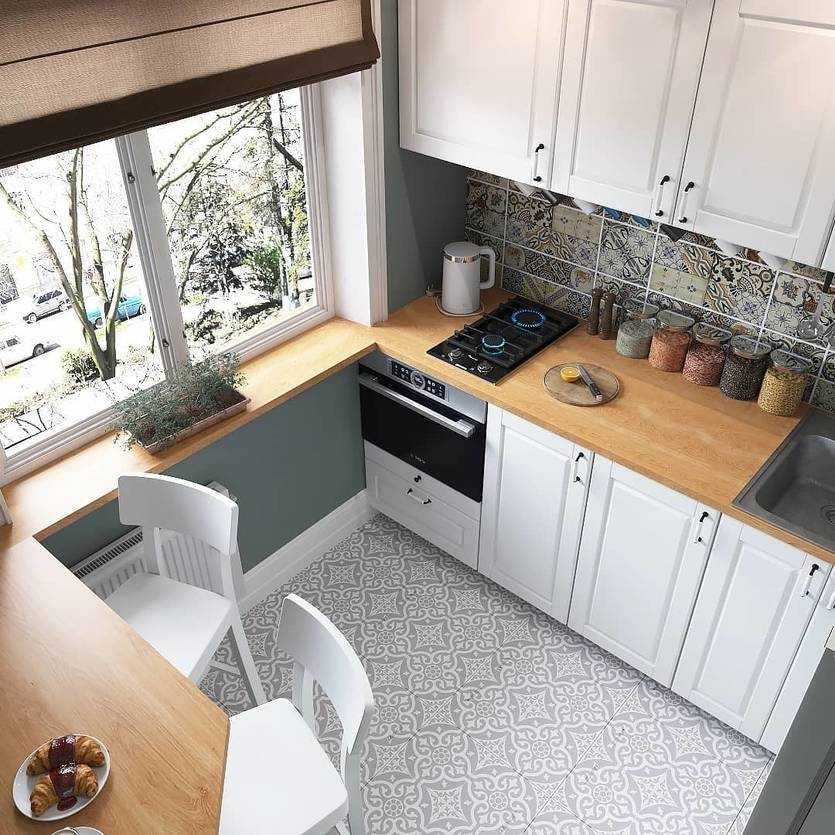 Если к кухне примыкает балкон, его пространство можно использовать для увеличения кухонной площади. Простенок между балконом убирается, кухня расширяется, а на дополнительных полезных метрах площади размещают обеденную зону, как на фото ниже. Только в данном случае понадобится выполнить работы по утеплению балкона, чтобы в зимнее время года находиться на кухне было уютно, а неудобств из-за пониженной температуры воздуха не возникало.