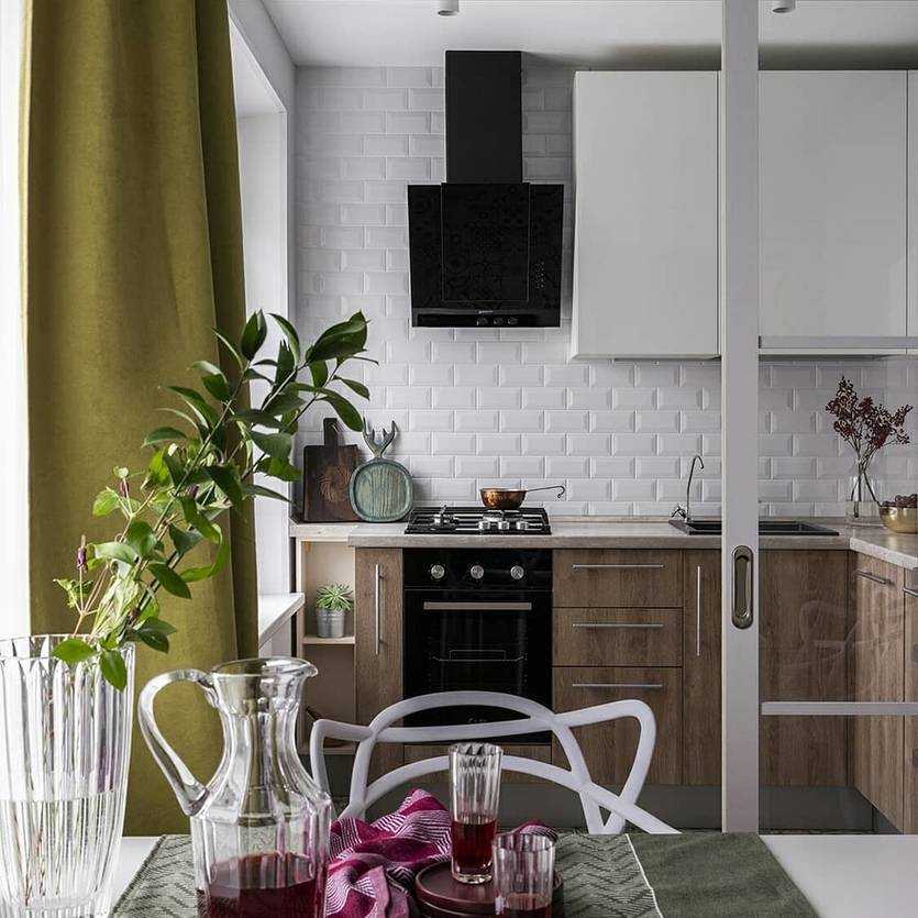 Можно убрать перегородку полностью, чтобы получить большое единое пространство. Правда, если у вас установлена газовая плита, так делать нельзя. Даже просто отсутствие двери не допускается — нужна гармошка или выдвижная конструкция. Альтернативный вариант — стеклянная стена, сдвинутая в сторону гостиной или кухни. Она отгородит зону приготовления еды и в то же время расширит полезную площадь.