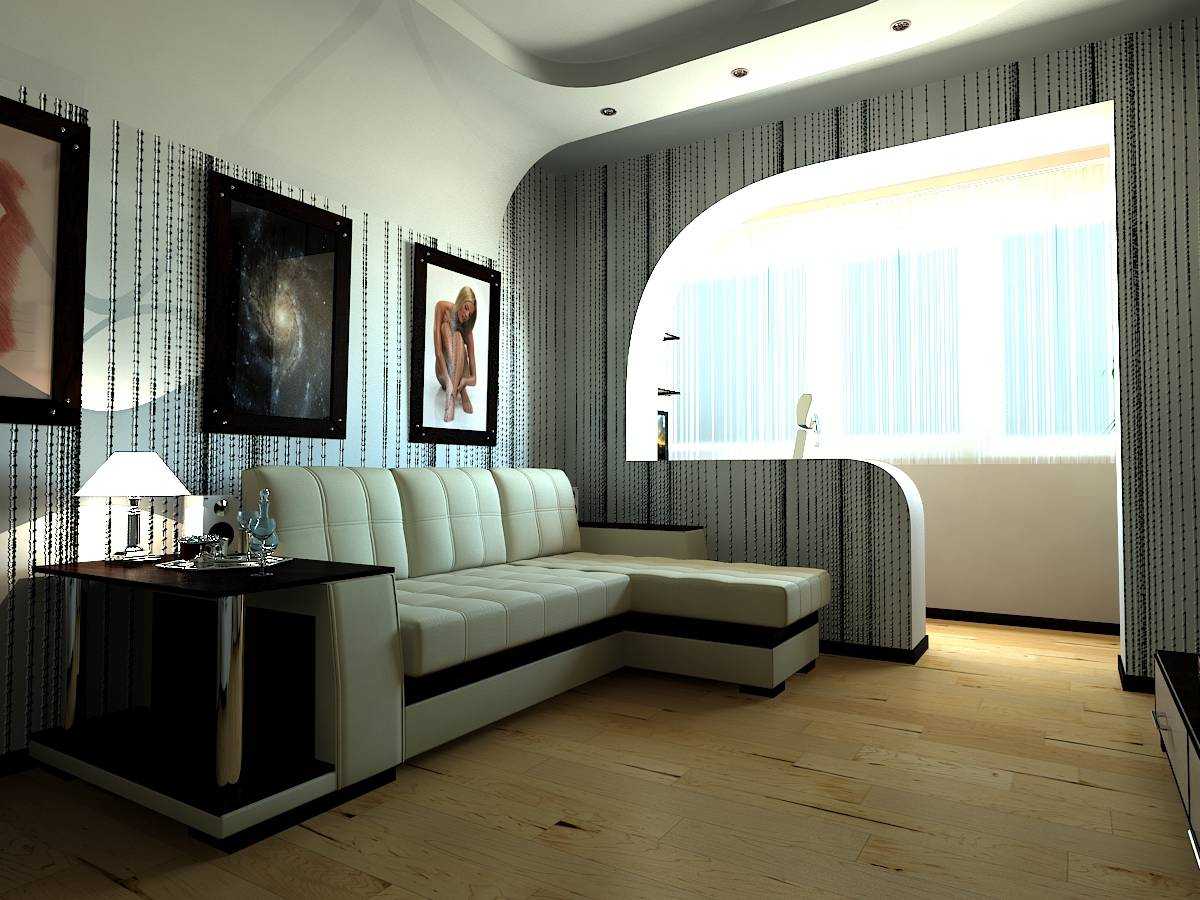 Объединив зал и балкон, вы получите большое пространство для создания гостиной. Чтобы полученное помещение рационально использовалось всеми членами семьи, необходимо в зале расположить телевизор, удобный диван, столик для кофе и журналов. При необходимости одну из частей можно отгородить ширмой и создать там детский уголок. Если один из членов семьи работает на дому, на лоджии, можно организовать удобное рабочее место.