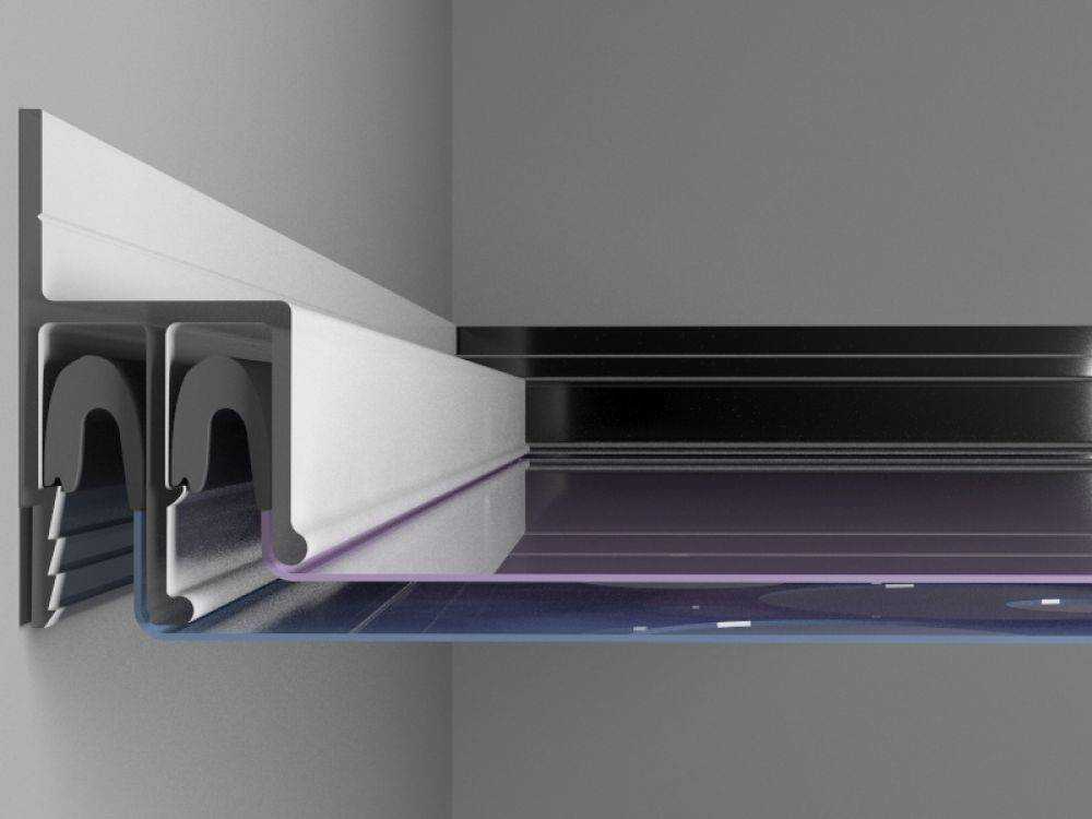 Помимо полотна, для установки натяжной потолочной конструкции необходим каркас, который и держит поливинилхлоридную пленку или синтетическую ткань. Этот каркас состоит из специальных профилей, также называемых багетами. Они изготавливаются методом экструзии из прочного пластика или алюминия.