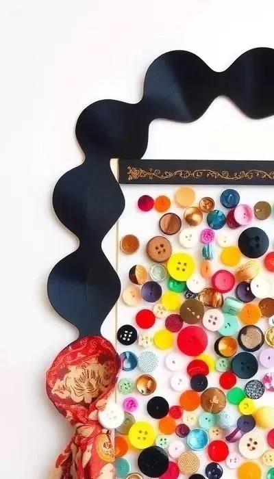 - Рамка из пуговиц: Приклейте пуговицы разных цветов и размеров к картонной основе.