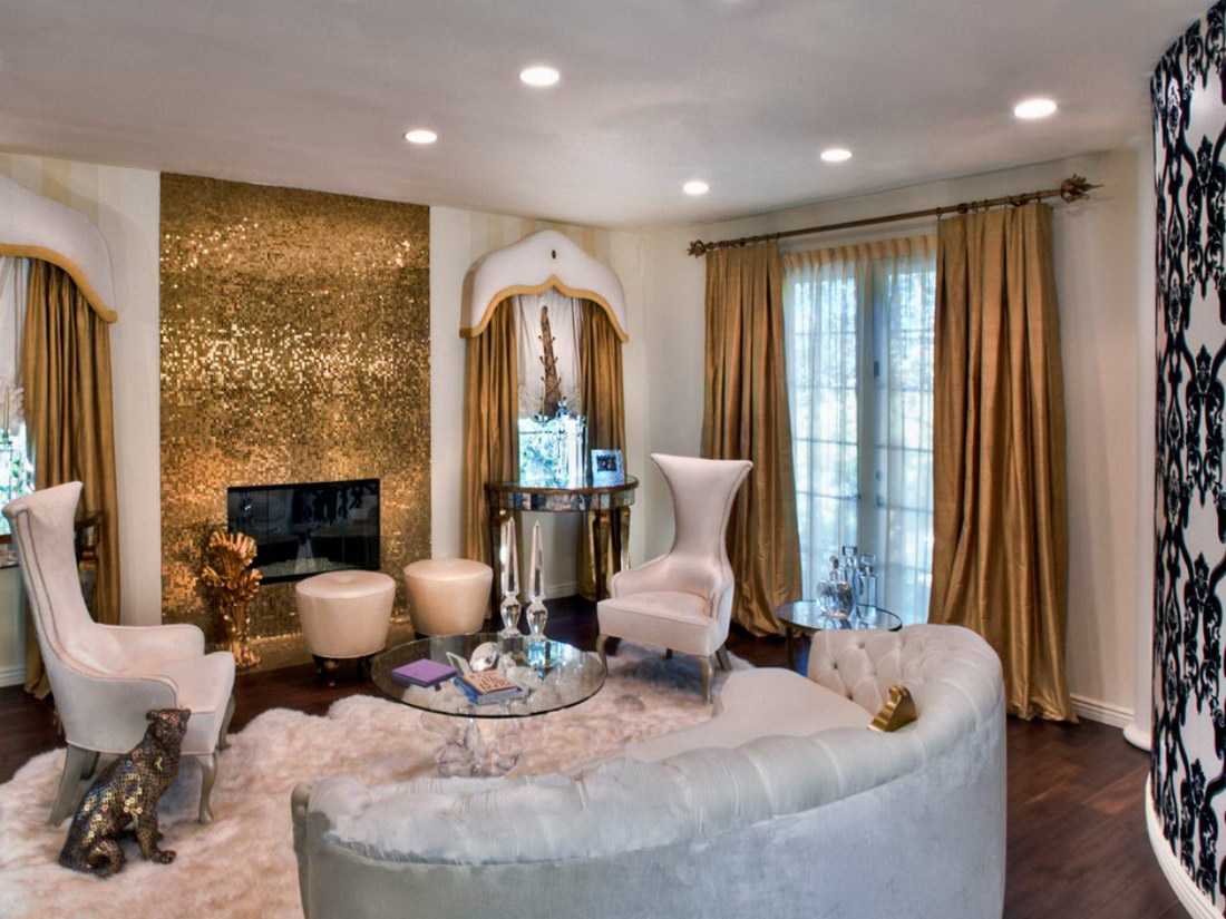 Поэтому стиль гламур является отличной идеей для оформления гостиной.